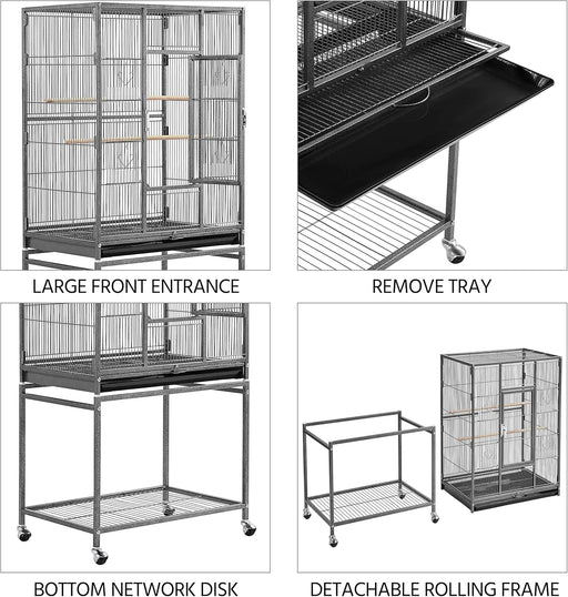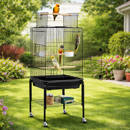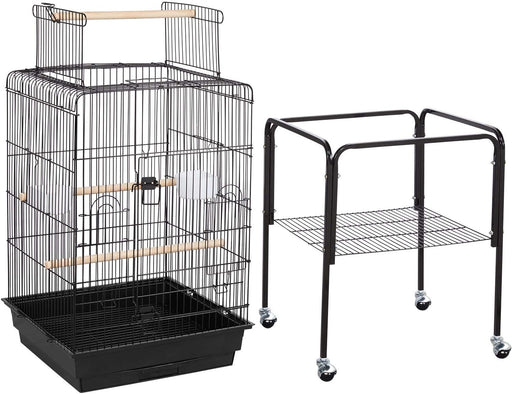 Gaiola para Pássaros com Suporte e Rodas 46,5 x 46,5 x 136 cm Preto Gaiola para Agapornis e outras aves de pequeno e médio porte, com suporte alto ...