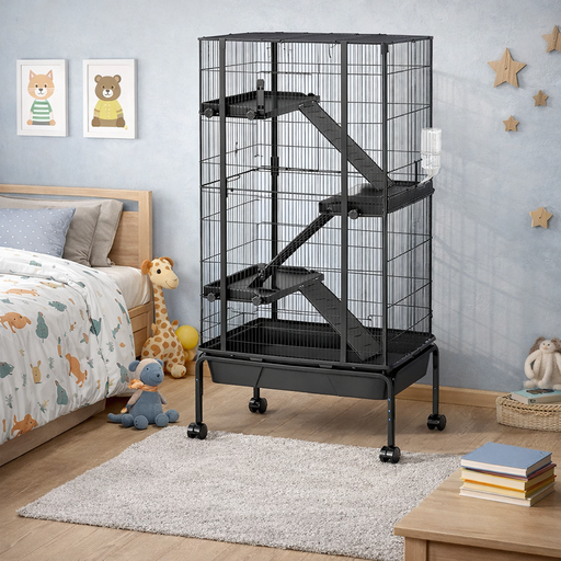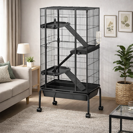 Gaiola para Roedores 4 Níveis com Rodas, Rampas e Bandeja Removível 69 x 44 x 120 cmGaiola para roedores de 4 níveis, ampla e resistente, ideal par...